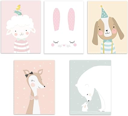 Freahap Set Di 5 Quadri Su Tela Animali Di Cartoni Animati Decorazioni Per Cameretta Dei Bambini 21 X 30 Cm A4 Amazon It Prima Infanzia