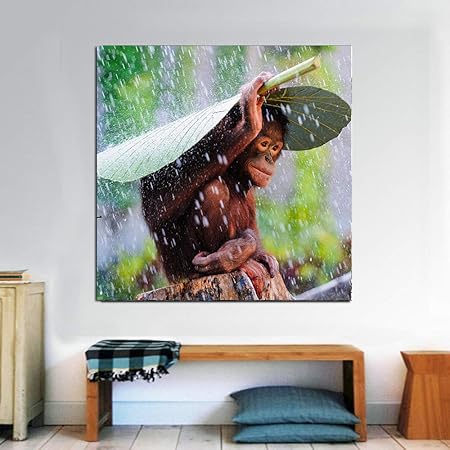 N A Quadri Su Tela Stampe Animali Dipinti Scimmietta Con Foglie Immagini Decorazioni Murali Per Cameretta Amazon It Casa E Cucina