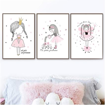 Amilart Set Di 3 Quadri Camera Da Letto Ragazza Immagini Quadri Per Camera Bambini Poster E Stampe Quadri Su Tela Arredamento Camera Ragazza 30x40cmx3 Senza Cornice Amazon It Casa E Cucina