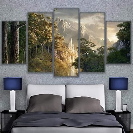 Zhying Stampa Su Tela 5 Pannelli Picture Cameretta Per Bambini Poster Cornici Moderne Per Quadri Decorazione Tela Il Signore Degli Anelli Scene Stampe D Arte Parete Modulare Amazon It Casa E Cucina