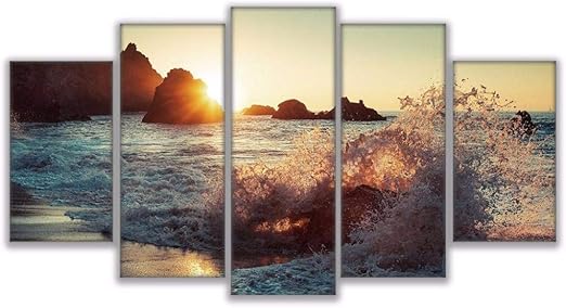 Amazon Com Woplmh Quadri Su Tela Wall Art Home Decor Soggiorno 5 Pezzi Bellissima Spiaggia Rocciosa Sunset Immagini Stampe Mare 30x40cmx2 30x60cmx2 30x80cmx1 Senza Cornice Posters Prints