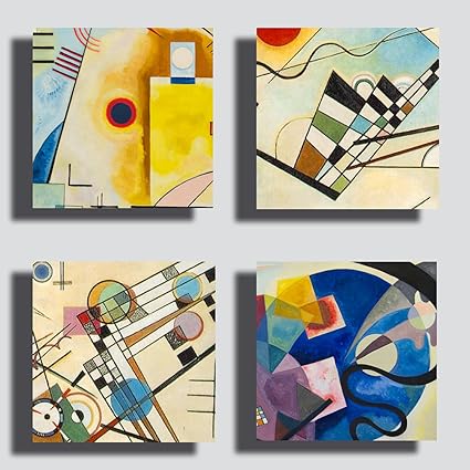 Quadri Moderni Stile Kandinsky 4 Pezzi 40x40 Cm Giallo Blu Rosso Stampa Su Tela Canvas Arredamento Arte Xxl Arredo Soggiorno Salotto Camera Da Letto Cucina Ufficio Bar Ristorante Amazon It Casa E Cucina