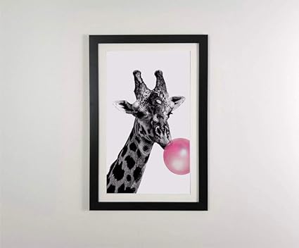 Quadro Con Cornice Giraffa Chicle Una Giraffa Facendo Un Palloncino Di Gomma Da Masticare 37x58 Cm Modanatura 3 Cm Nero Opaco Pronto Da Appendere Amazon It Casa E Cucina