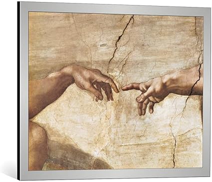 Quadro Con Cornice Michelangelo Buonarroti Creazione Di Adamo Stampa Artistica Decorativa Cornice Di Alta Qualita 80x60 Cm Argento Spazzolato Amazon It Casa E Cucina