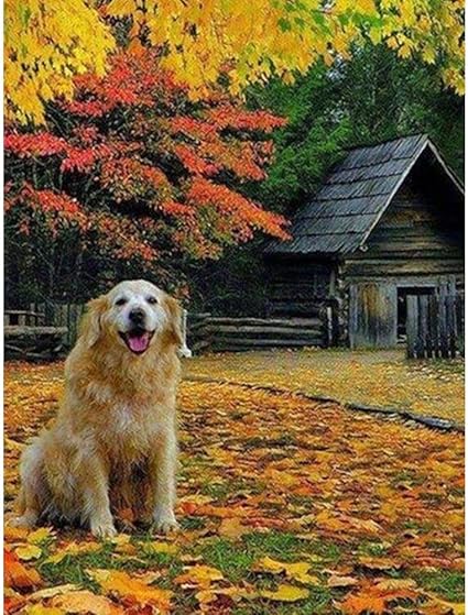 Greatmin Kit Fai Da Te Per Pittura Con Perline 5d Per Adulti Con Ricamo Con Strass Motivo Golden Retriever E Foglie Autunnali 30 X 40 Cm Amazon It Casa E Cucina