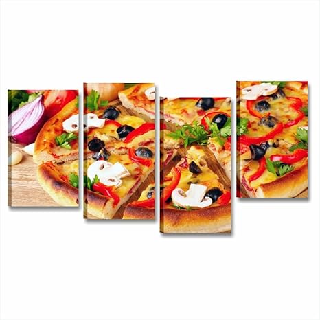 Quadri L C Italia Pizza 3 Quadro Cucina Stampa Su Tela Canvas Da Parete 4 Pezzi 152 X 78 Decorazioni Per Arredamento Moderno Ristorante Bar Pizzeria Amazon It Casa E Cucina