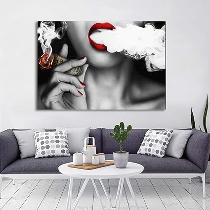 Tela Stampa Arte Pittura Labbra Rosse Donna Fumo Quadri Moderni Famiglia Soggiorno Camera Da Letto Decorazione Noframeb 70x100cm Amazon It Casa E Cucina