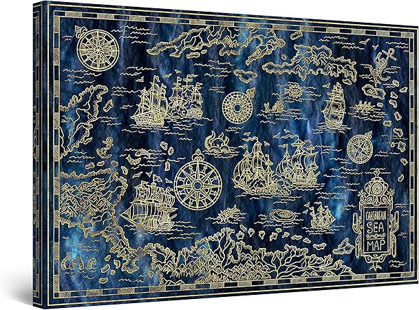 Startonight Quadro Su Tela Vecchia Mappa Oro Blu Grandi Quadri Moderni Astratti Stampe Camere Da Letto 80 X 120 Cm Amazon It Casa E Cucina