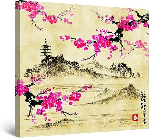 Startonight Quadro Su Tela Cielo Paesaggio Alberi Con Fiori Rosi Bianchi Grandi Quadri Moderni Natura Stampe Camere Da Letto 80 X 120 Cm Amazon It Casa E Cucina