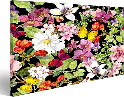 Islandburner Quadri Moderni Fiori Estivi E Farfalle Su Uno Sfondo Nero Motivo Floreale Chic Stampa Su Tela Quadro Ewd Amazon It Casa E Cucina