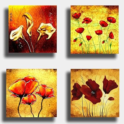 Printerland Quadri Moderni Fiore Etnico Papaveri Fiori 4pezzi 40x40 Cm Stampa Su Tela Canvas Arredamento Arte Astratto Xxl Arredo Soggiorno Salotto Camera Letto Cucina Ufficio Bar Ristorante Amazon It Casa E Cucina