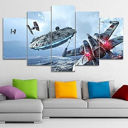 Quadri Moderni In Hd Con Immagini A Parete Stampate 5 Pezzi Millennium Falcon X Wing Movie Paintings Decorazioni Per La Casa Poster Amazon It Casa E Cucina