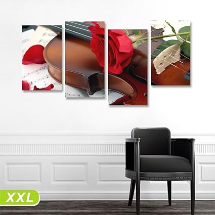 Quadri L C Italia Violino Quadro Moderno Rosa Rossa Per Soggiorno Camera Da Letto Salotto 152 X 78 Stampa Su Tela 4 Pezzi Multipannello Grandi Con Fiori Musica Amazon It Casa E Cucina