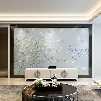Carta Da Parati Adesiva Muro Quadri Moderni Soggiorno Xxl Poster 3d Damascata Murale Soggiorno Camera Da Letto Azzurro Fresco Piccoli Fiori Bianchi Moderno Minimalista Caldo Tv Sfondo Carta Da Parati Amazon It Fai