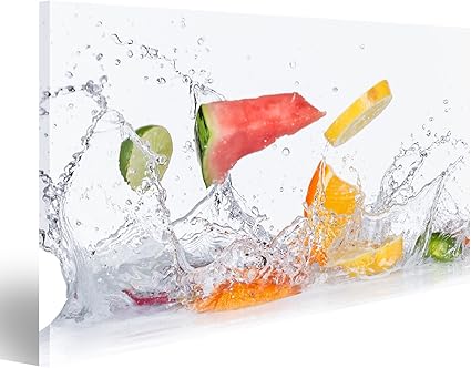Quadri Moderni Frutta Con Spruzzi D Acqua Isolato Su Sfondo Bianco Stampa Su Tel Stampa Su Tela Quadro Ety Amazon It Casa E Cucina