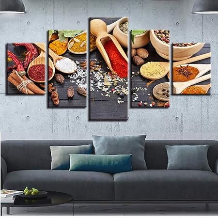 Lzlz 5 Dipinti Consecutivi 5 Pezzi Cucina Pittura Su Tela Cibo Foto Parete Cibo 5 Pannelli Spezie Soggiorno Quadri Murali Quadri Amazon It Casa E Cucina