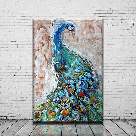 Wallart Quadri Senza Cornice Dipinti Ad Olio Decorativi Splendido Pavone Amazon It Casa E Cucina