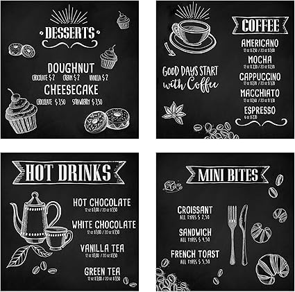 Viivei Quadri Da Cucina In Tela A Forma Di Lavagna In Bianco E Nero Pannelli Grandi Con Cornice Pronti Da Appendere Decorazione Per La Casa 4 Unita A 12x12inchx4 Amazon It Casa E