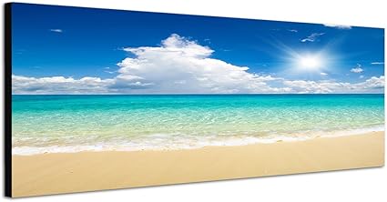 Quadro Su Tela Con Panorama Di Spiaggia Mare E Nuvole Sole E Estate 150 X 50 Cm Amazon It Casa E Cucina