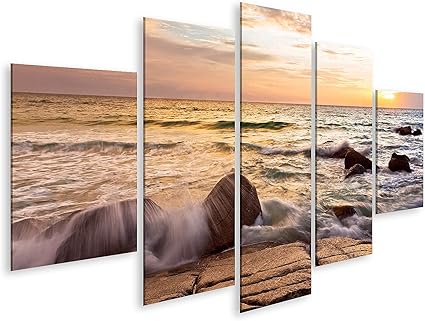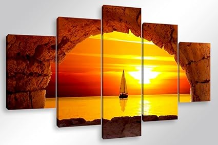 Degona Quadro Moderno Tramonto Sul Mare 5 Pz Cm 150x90 Stampa Su Tela Canvas Arredamento Arte Xxl Arredo Per Soggiorno Salotto Camera Da Letto Cucina Ufficio Bar Ristorante Effetto Dipinto Amazon It