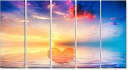 Rdchy Grande Quadro Su Tela Moderna Tramonto Sul Mare 5 Pannelli Dipinti Opere D Arte Quadri Parete Elementi Multipli Decorazione Da Parete Per Cucina Salotto Senza Telaio Amazon It Casa E Cucina