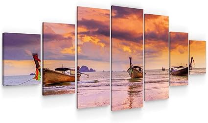 Startonight Grande Quadro Su Tela Tre Barche E Un Tramonto Viola Sul Mare Grandi Quadri Moderni Paesaggio Stampe Soggiorno Xxl Di 7 Parti 100 X 240 Cm Amazon It Casa E Cucina