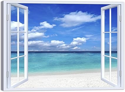 Luxhomedecor Quadro Finestra Mare Spiaggia 100x75 Cm Stampa Su Tela Con Telaio In Legno Arredamento Arte Arredo Moderno Amazon It Casa E Cucina