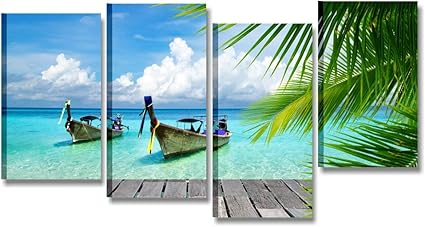 Quadri L C Italia Quadro Mare Con Pesaggi Per Soggiorno Moderno Camera Da Letto Ufficio 152 X 78 Stampa Su Tela Da Parete Natura 4 Pezzi Grandi Componibili Caraibi Beach Amazon It Casa E Cucina