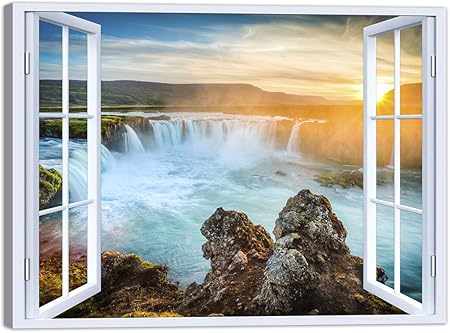 Luxhomedecor Quadro Finestra Mare Tramonto 100x75 Cm Stampa Su Tela Con Telaio In Legno Arredamento Arte Arredo Moderno Amazon It Casa E Cucina