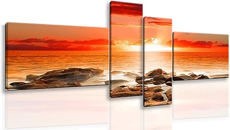 Quadri L C Italia Alba 2 Quadro Mare Moderno Con Pesaggi Per Soggiorno Camera Da Letto Ufficio 152 X 78 Stampa Su Tela Da Parete 4 Pezzi Grandi Multipannello Amazon It Casa E Cucina