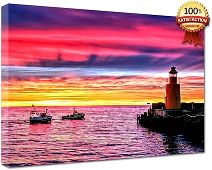 Xvhsx Stampe E Quadri Su Tela Faro Nel Mare Al Tramonto Dipinti Per Camera Da Letto Wall Art Home Decor Picture Tela Pittura Calligrafia Per Soggiorno Con Cornice Amazon It Amazon It