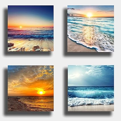 First Wall Art Spiaggia Sotto Il Tramonto Quadri Mare Blu E Onde Stampa Su Tela 4 Pannelli Moderni Paesaggi Marini Decorazione Da Parete Per Soggiorno Camera Da Letto Cucina Amazon It Casa E Cucina