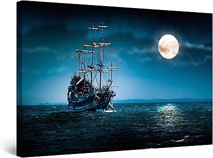 Startonight Quadro Su Tela Nave E La Luna Sulla Pittura Del Mare Blu Grandi Quadri Moderni Stampe Camere Da Letto 80 X 120 Cm Amazon It Casa E Cucina