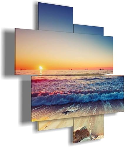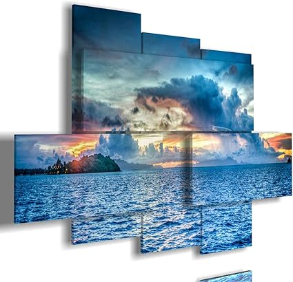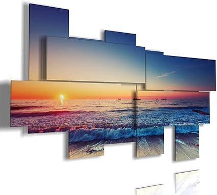 Quadri Moderni Soggiorno Quadro Mare E Tramonto 02 Moderno 3d Multilivello Multipannello Arredamento Amazon It Casa E Cucina
