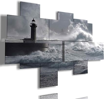 Quadro Mare Multilivello Quadri Moderni Faro Sul In Tempesta 01 3d Amazon It Casa E Cucina