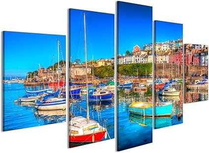 Islandburner Quadro Moderno Barche Variopinte In Porticciolo In Mare Calmo Con Cielo Blu Nelle Case Di Hdr Su Pendio Di Stampa Su Tela Quadri Moderni Kjq Mfp It4 Amazon It Casa E Cucina