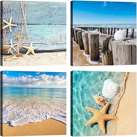 Quadri Spiaggia Mare 4 Pezzi 30x30 Cm Stampa Su Tela Con Telaio In Legno Arredamento Arte Arredo Moderno Amazon It Casa E Cucina