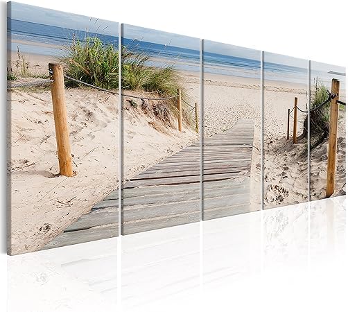 Runa Art Quadri Spiaggia Palme 200 X 100 Cm 5 Pezzi Xxl Decorazione Murale Design Blu Beige 603351a Amazon It Casa E Cucina