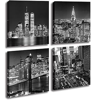 Amazon Com Wieco Art New York Manhattan Night View In Black And White Giclee Canvas Prints Modern Stretched And Framed Art Work Cityscape Pictures Paintings On Canvas Wall Art For Bedroom Home Decorations