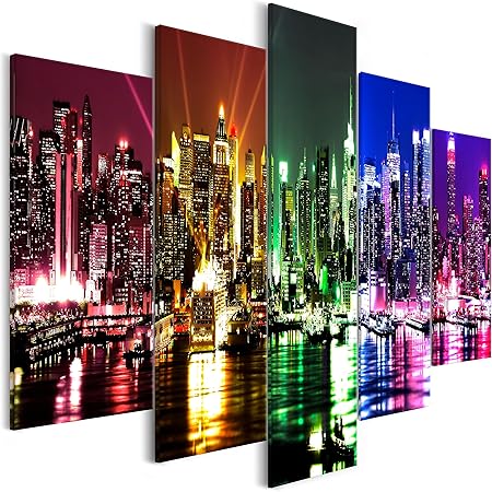 Murando Quadro New York 225x100 Cm Stampa Su Tela In Tnt Xxl Immagini Moderni Murale Fotografia Grafica Decorazione Da Parete 5 Pezzi City Citta City Nyc Colorato D C 0077 B M Amazon Co Uk Kitchen Home