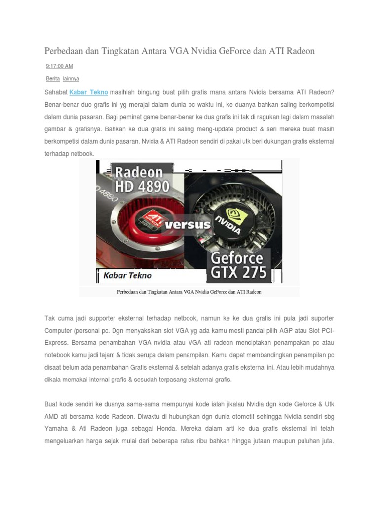 Perbedaan Dan Tingkatan Antara Vga Nvidia Geforce Dan Ati Radeon