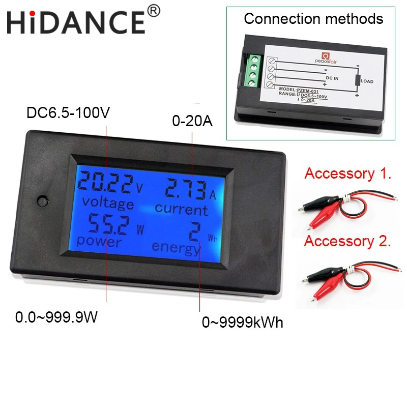 100 V 20a Digital Dc Voltmetro Di Tensione Metri Amperometro Corrente Power Energy Watt Wh Volt Ampere Battery Monitor Retroilluminazione Blu Pannello Monitor Headset Battery Alcatelmonitor Dvr Aliexpress