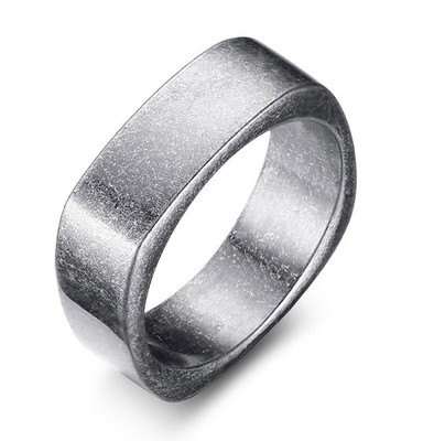 Anello Quadrato Uomo Donna In Acciaio Inox Brunito Grigio Vintage Fascia Idea Ebay