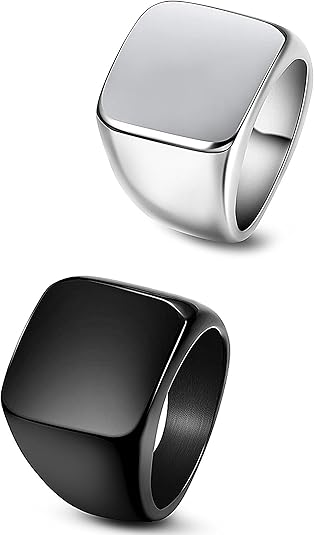 Hkdeb Bande Retro Anello Uomo Titanio Anelli D Acciaio Quadrati 14mm Anelli Vintage Nero Argento Amazon It Gioielli