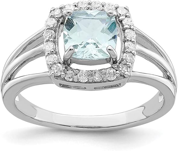 Sparkles 0 06 Ct Diamanti E 1 3 Ct Acquamarina Anello A Forma Di Quadrato In Oro Bianco 9 Kt Gh Colore Si Clarity Amazon It Gioielli