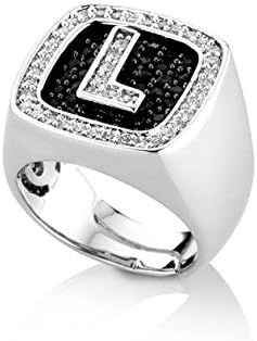 Anello Chevalier Quadrato Con Lettera Iniziale Con Zirconi Bianchi Con Fondo Zirconi Neri In Argento 925 Rodiato 20098