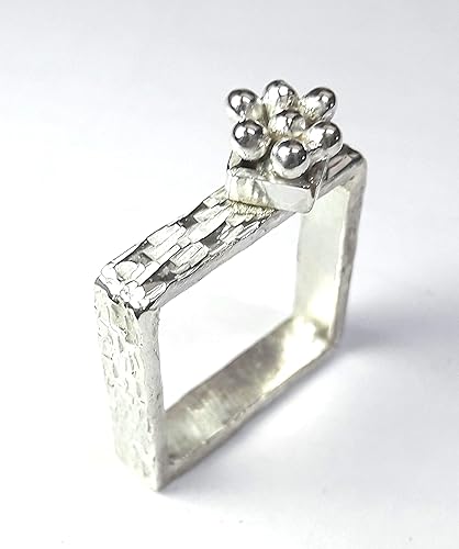 Pietro Ferrante Anello Quadrato Graffi Bronzo Finitura Argento Shop