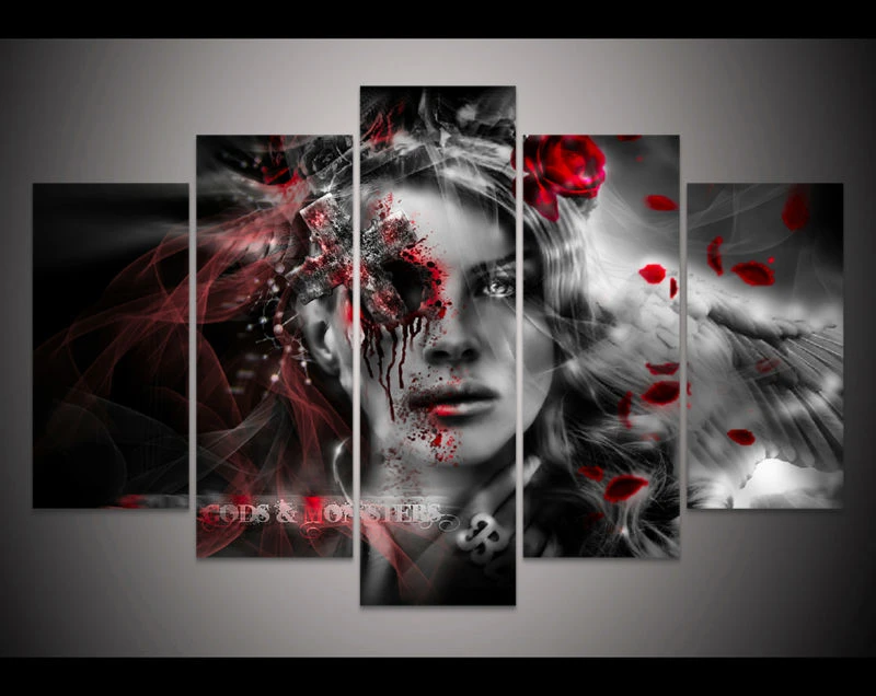 Pittura Sul Muro Horror Sangue Angelo Quadri Su Tela Per Soggiorno 5 Pz Unframed Immagini Modulari Calda Cuadros Decorazione The Paintings Picture For Living Roomcanvas Picture Aliexpress