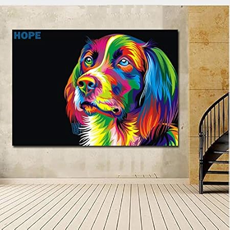 Haoxinbaihuo Stampa Artistica Poster Cane Colorato Speranza Dipinti Animali Quadri Su Tela Per Soggiorno Immagini Decorative Senza Cornice 40 55cm Amazon It Casa E Cucina