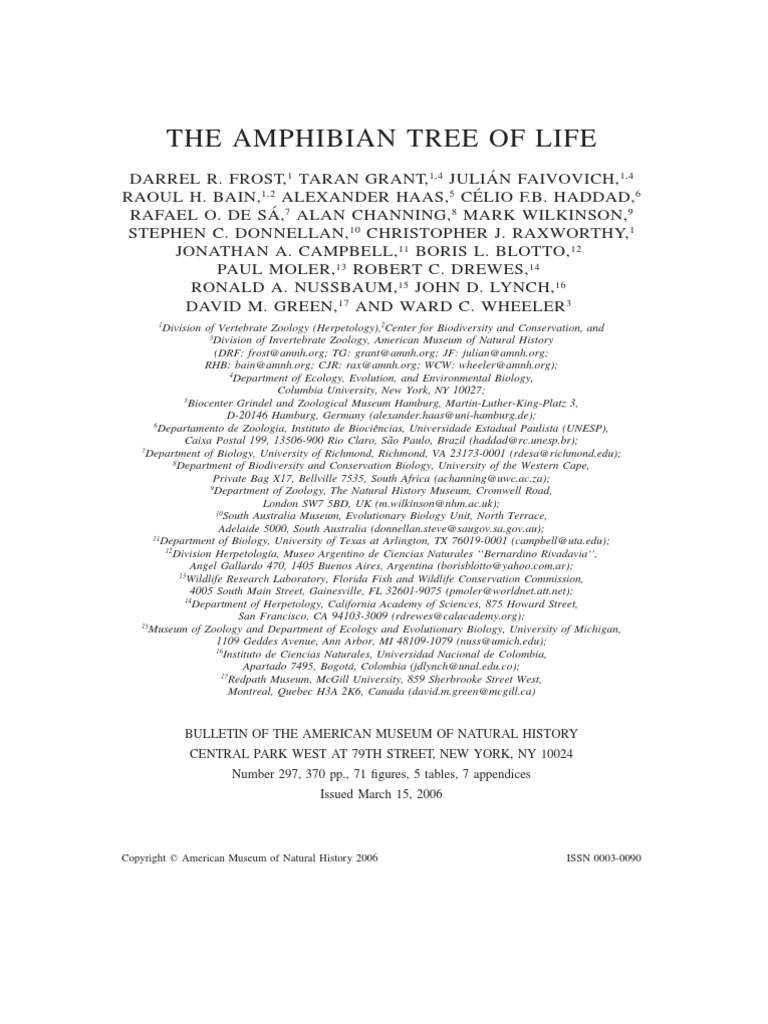Frost Faivovich Et Al 2006 Filogenia De Anfibios Taxon Vertebrates